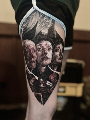 With a classical fine art background in oil painting and anatomy, Ian began his tattoo career over six years ago. His signature style blends hyperrealism with dark surrealism and dramatic lighting, heavily influenced by Baroque and Renaissance masters. Ian’s tattoos are known for their cinematic detail, emotional depth, and ability to transform skin into fine art.