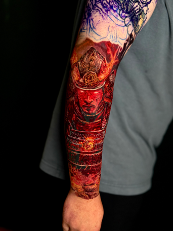 Ian specializes in large-scale custom work—from sleeves to full legs and backs—bringing mythological, religious, and psychological themes to life through bold contrast and precise technique. He also takes pride in tackling some of the most difficult cover-ups and reworks in the industry, turning old or unwanted tattoos into powerful new masterpieces.